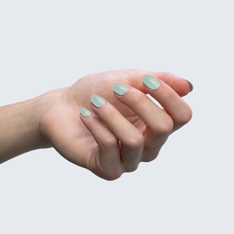 Teal. Pastel. Pearl finish. Opaque. Neutral undertone.